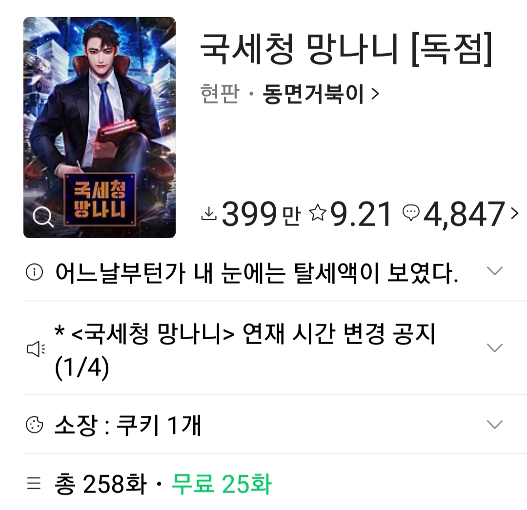 '국세청 망나니'는 네이버 시리즈에,