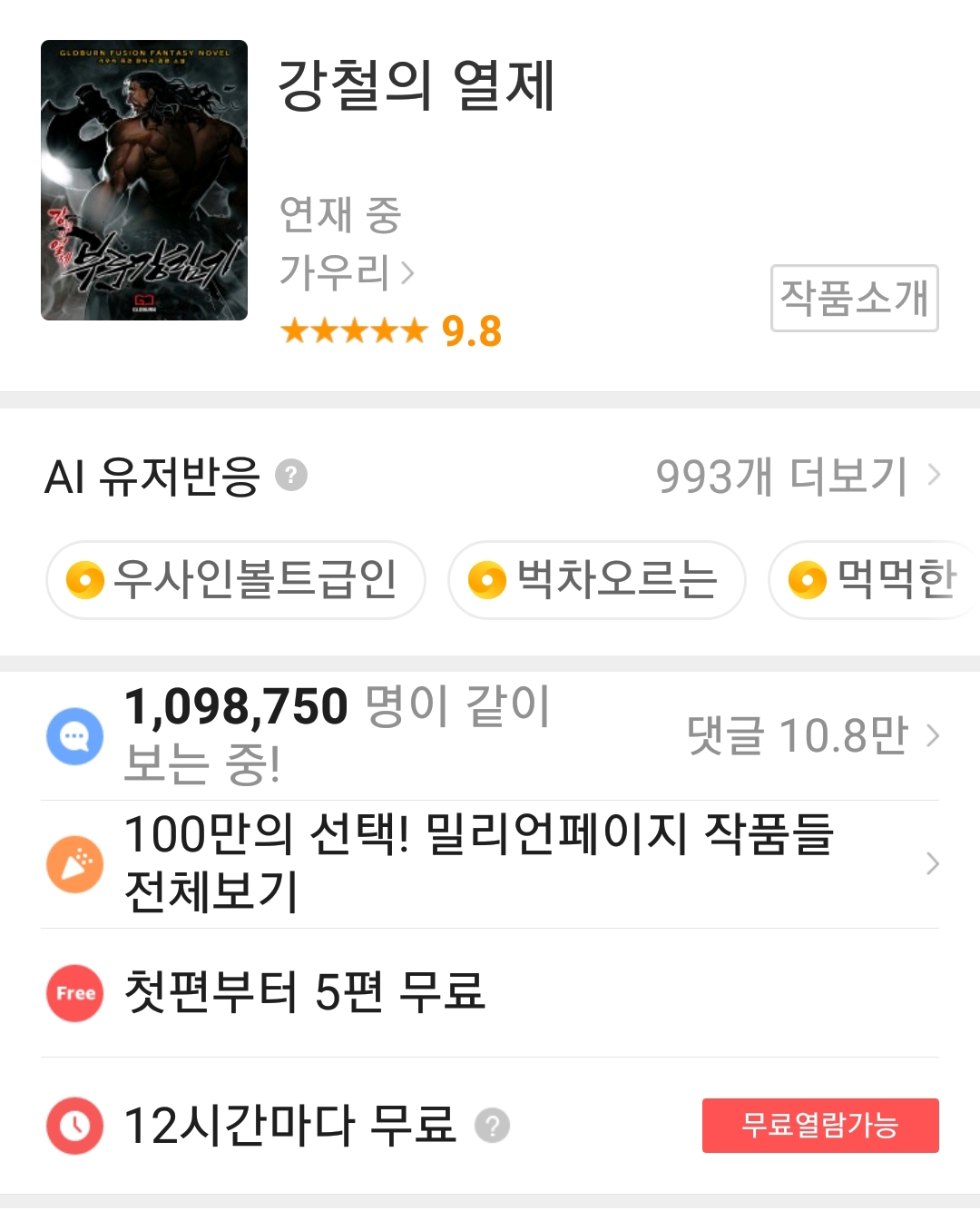 웹소설 강철의 열제웹툰, 웹소설 후기 2021. 2. 13. 01:46728x90