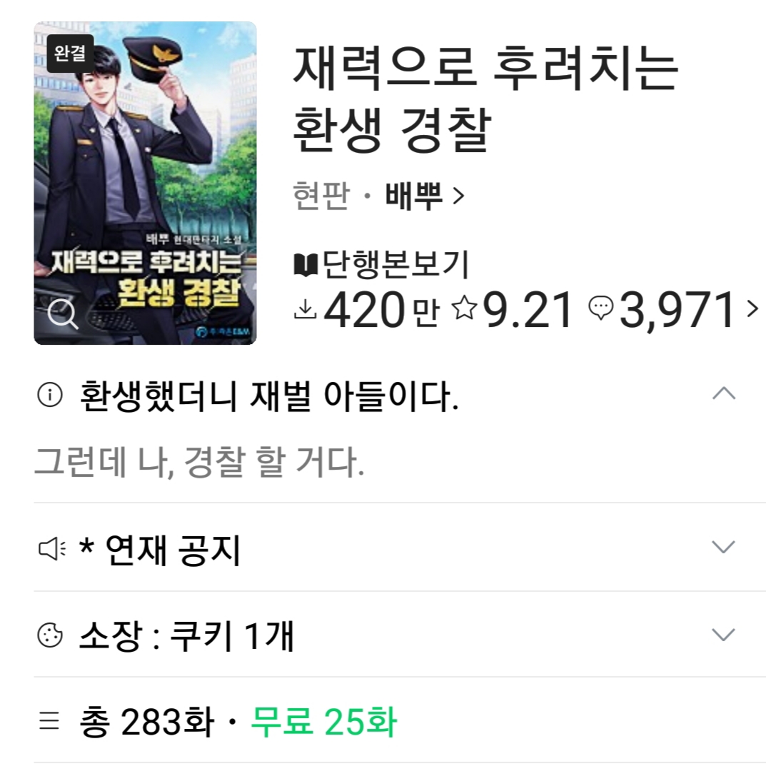 네이버 시리즈, 카카오 페이지에서 연재 완료된